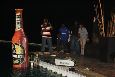 Chupa mpya ya Serengeti Lager yenye muonekano wa wa Dhahabu ikiibuka kutoka katika maji mara baada ya kuzinduliwa rasmi jana usiku.